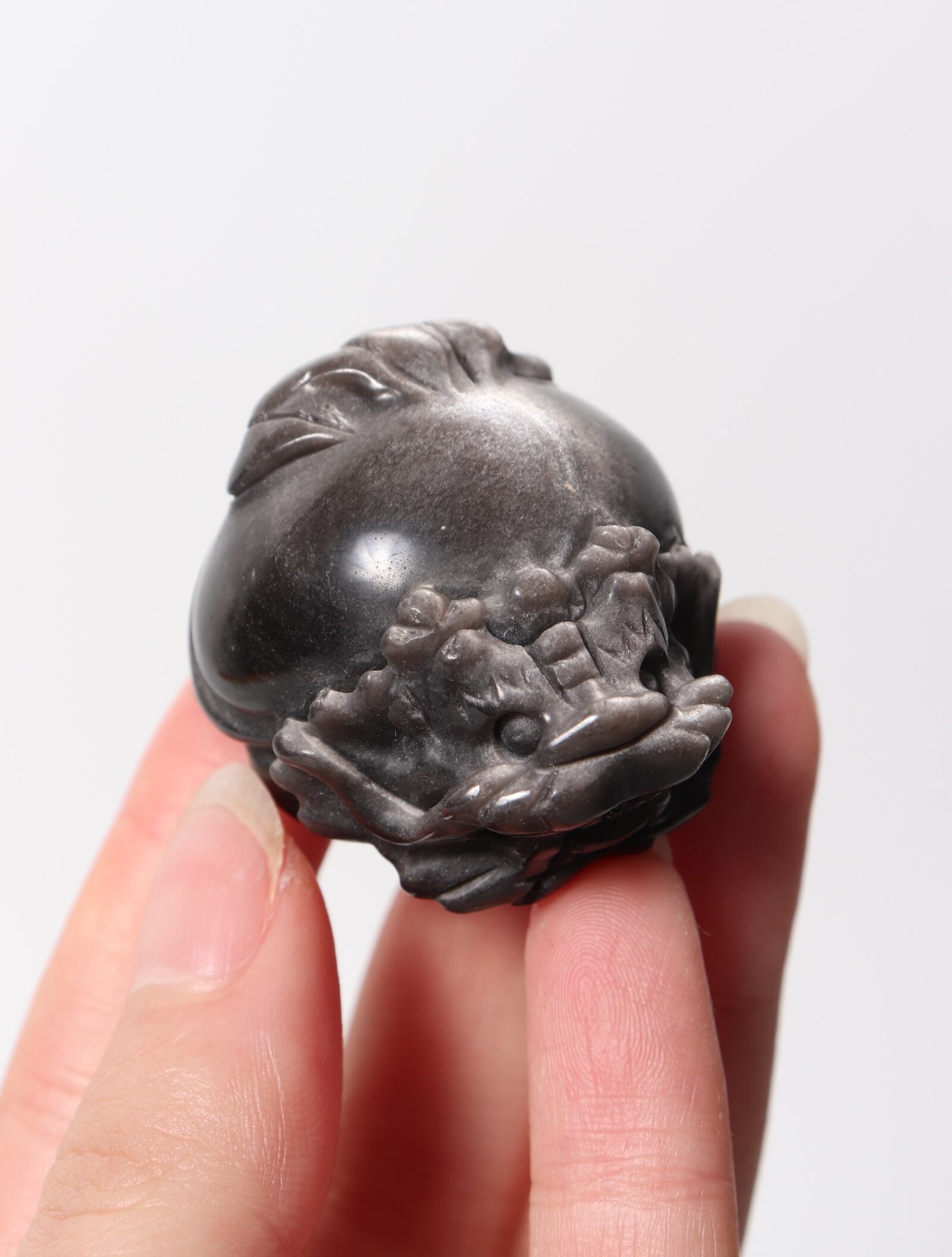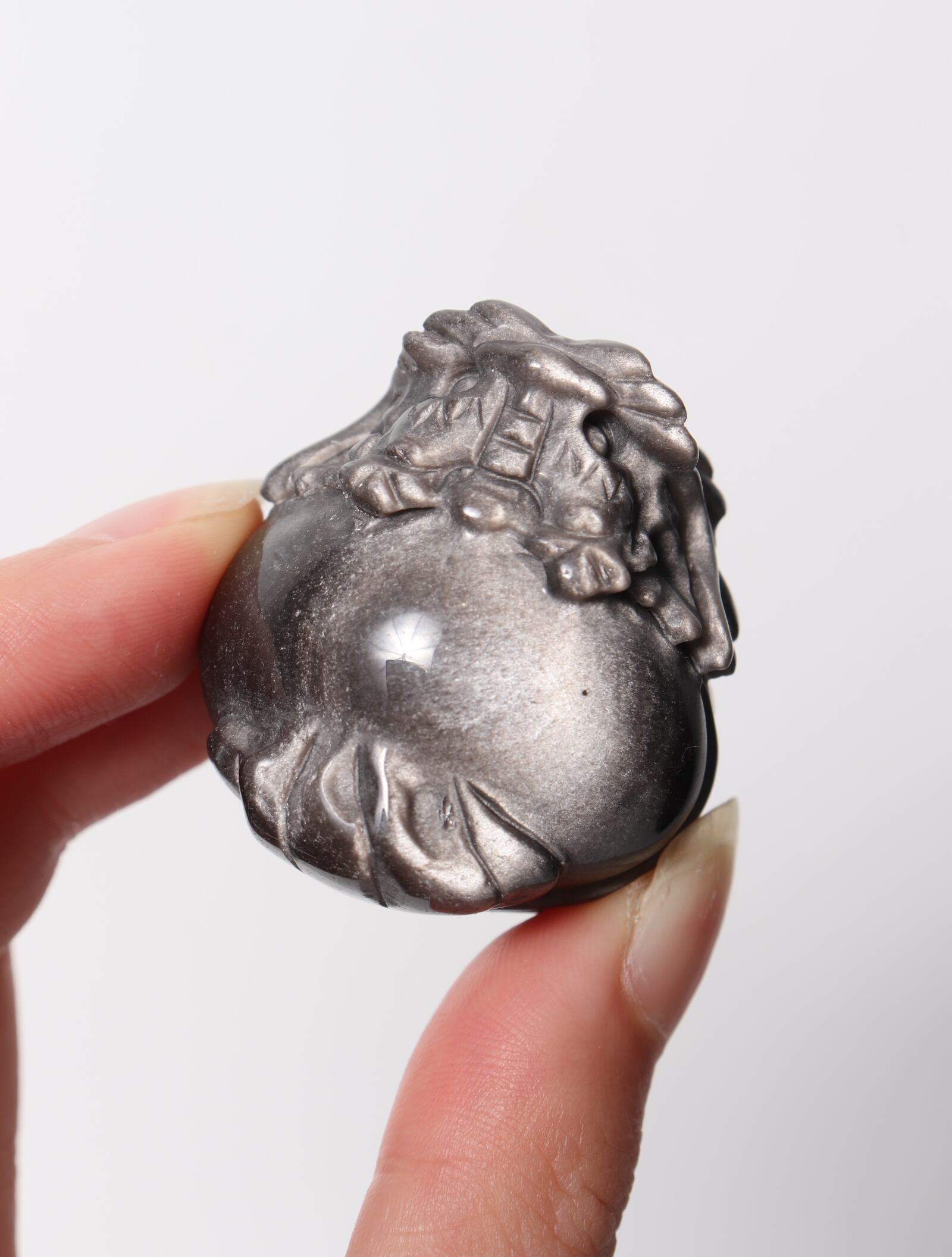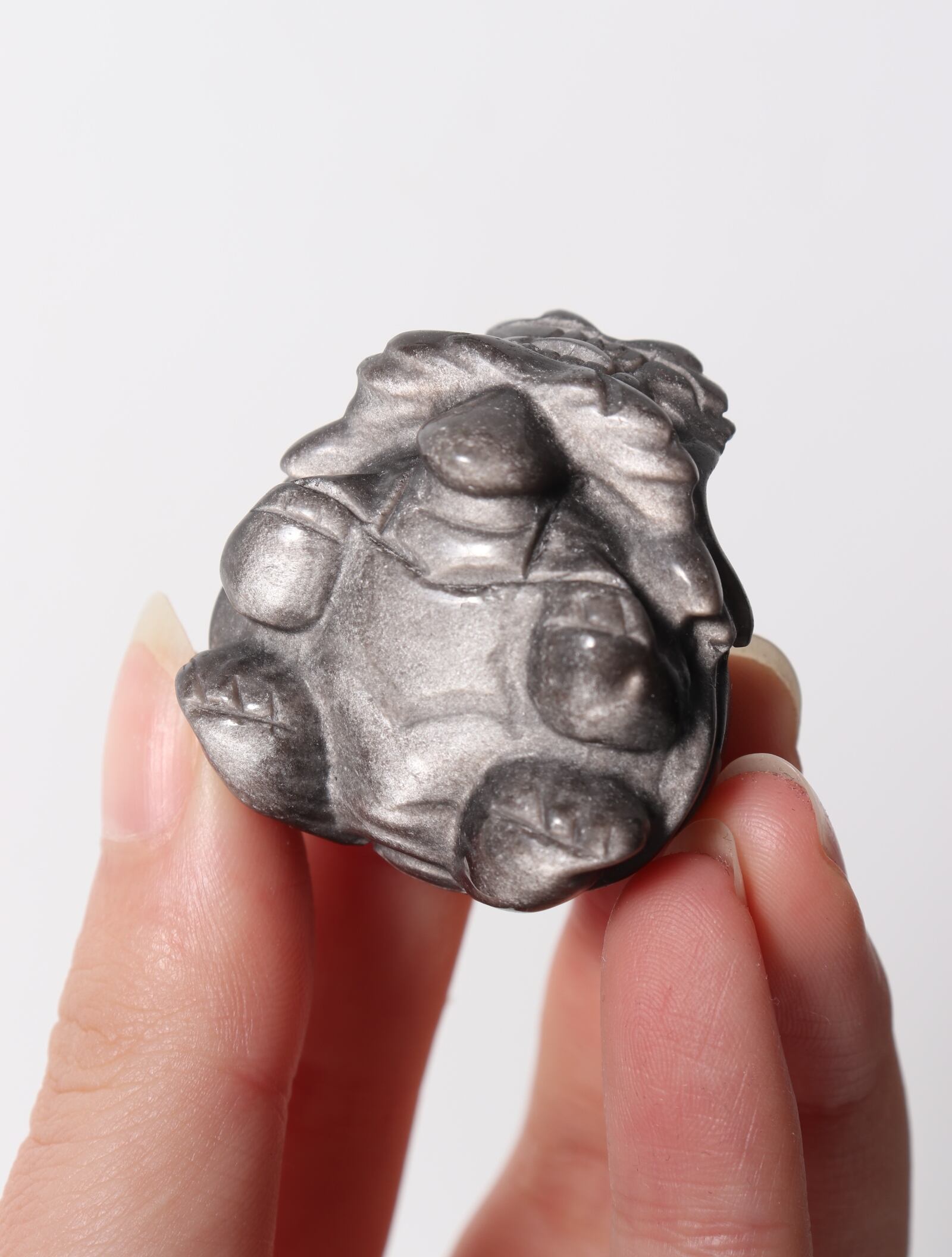 そんなシルバーオブシディアンを龍亀(ロングイ)の姿に丁寧に彫刻した特別な一点。