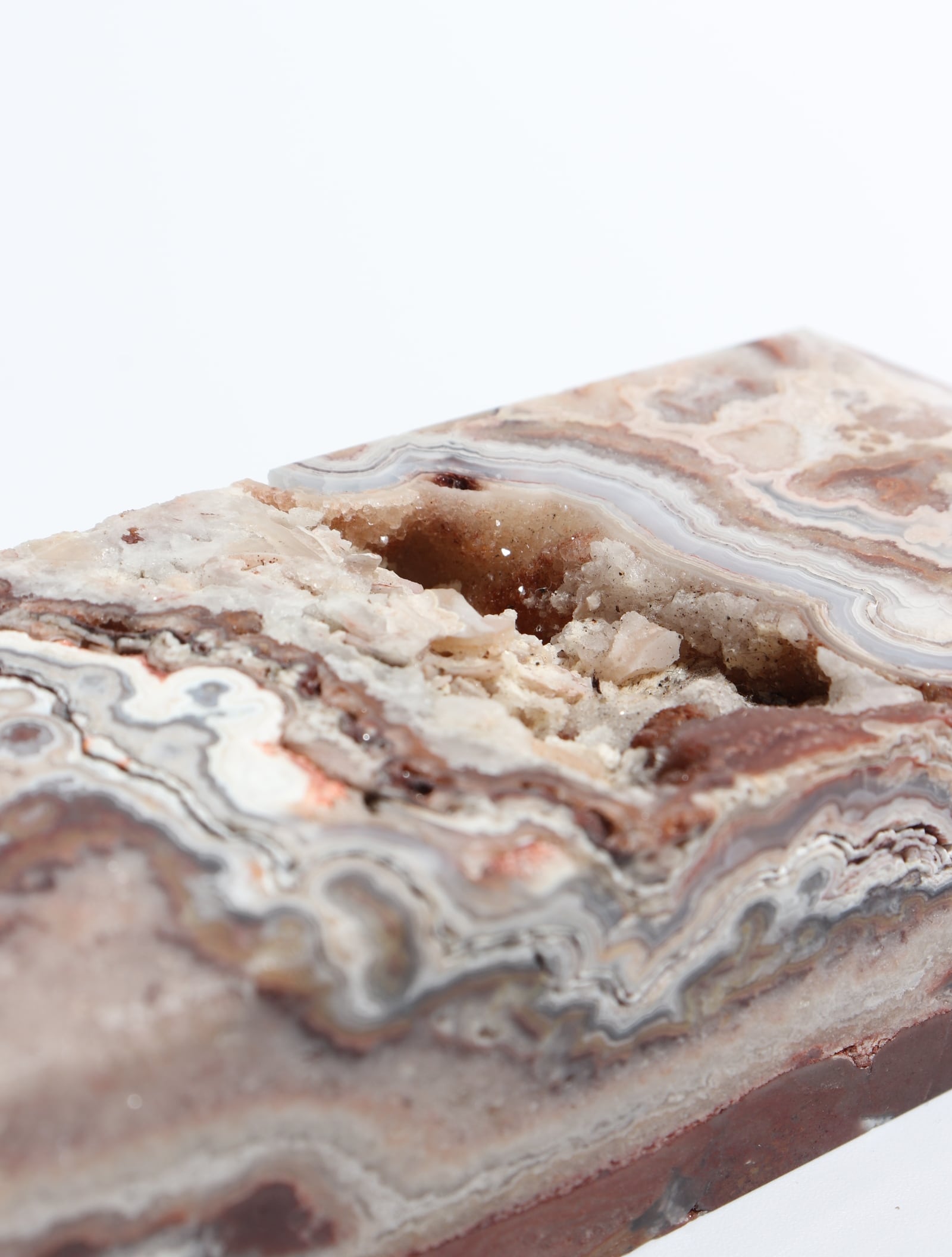 ナチュラルな縞目模様が美しい、メキシコ産クレイジーレースアゲート。その表面の模様が複雑に入り交ざり、神秘的なビジュアルが人気を呼びます。細かい結晶層が渦のように、表面に浮かんでいます。