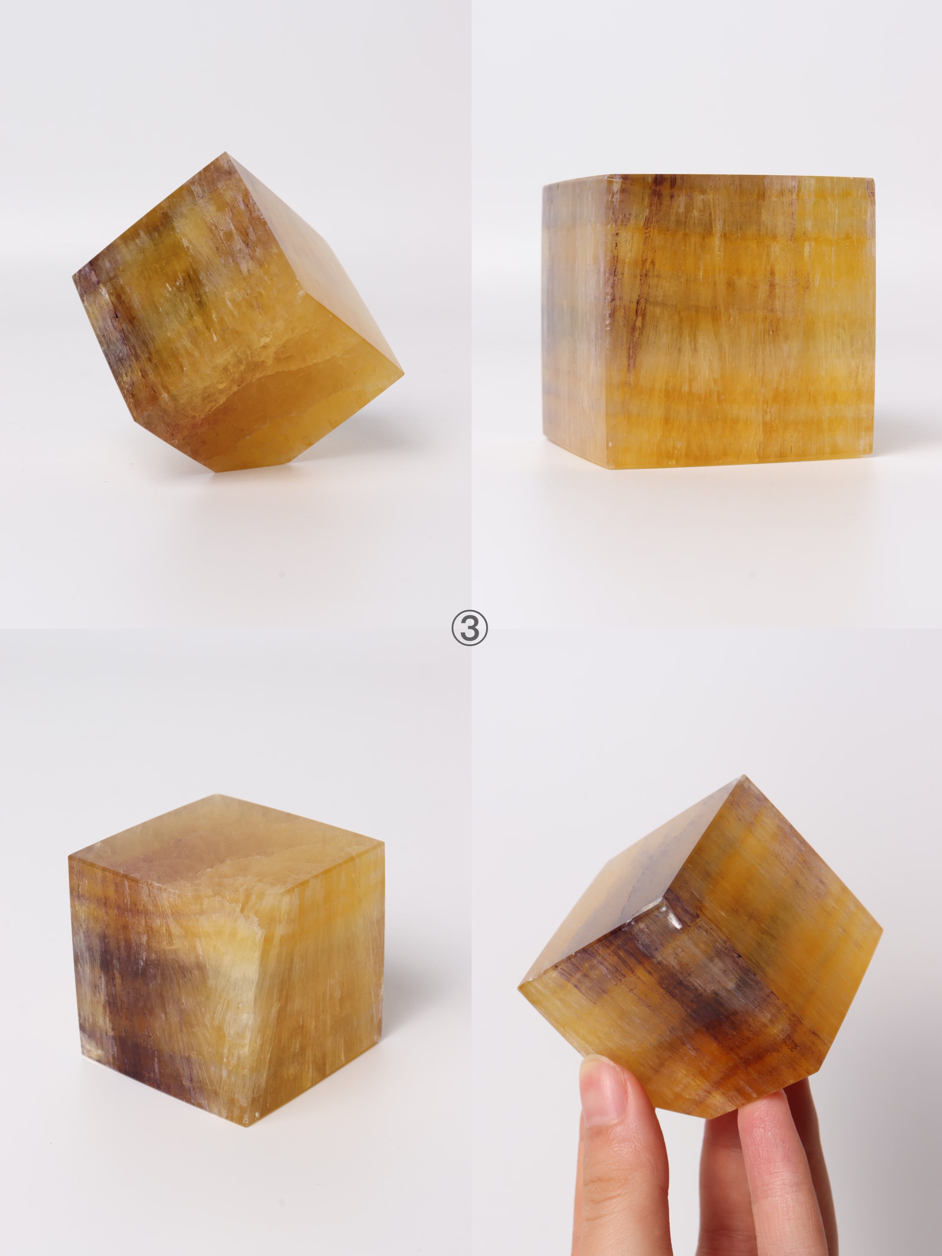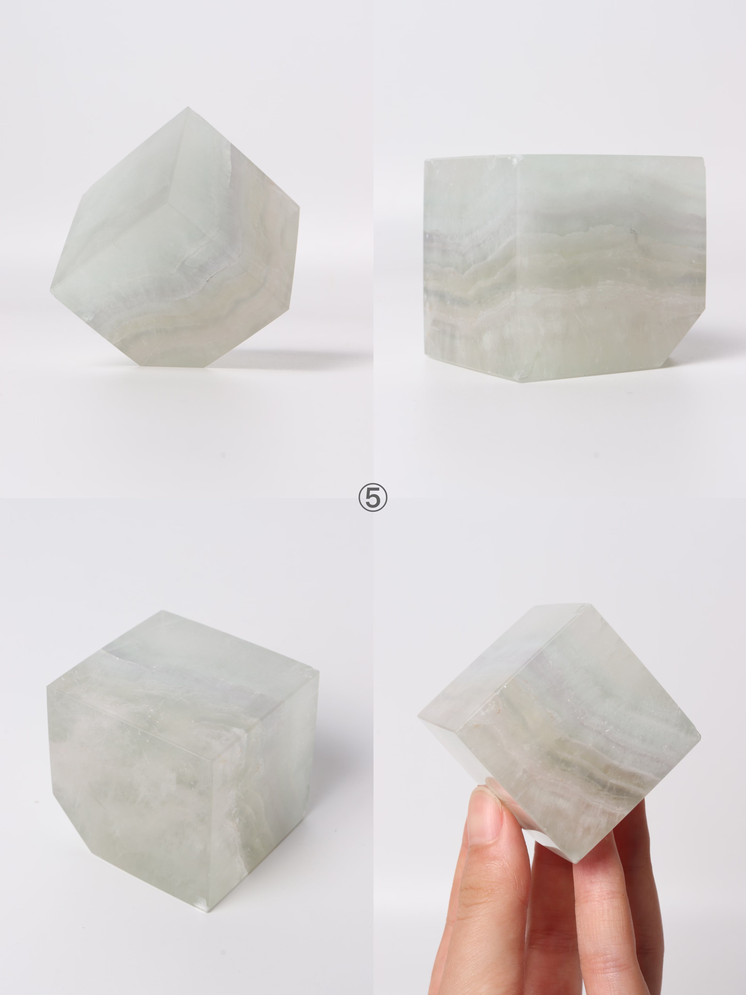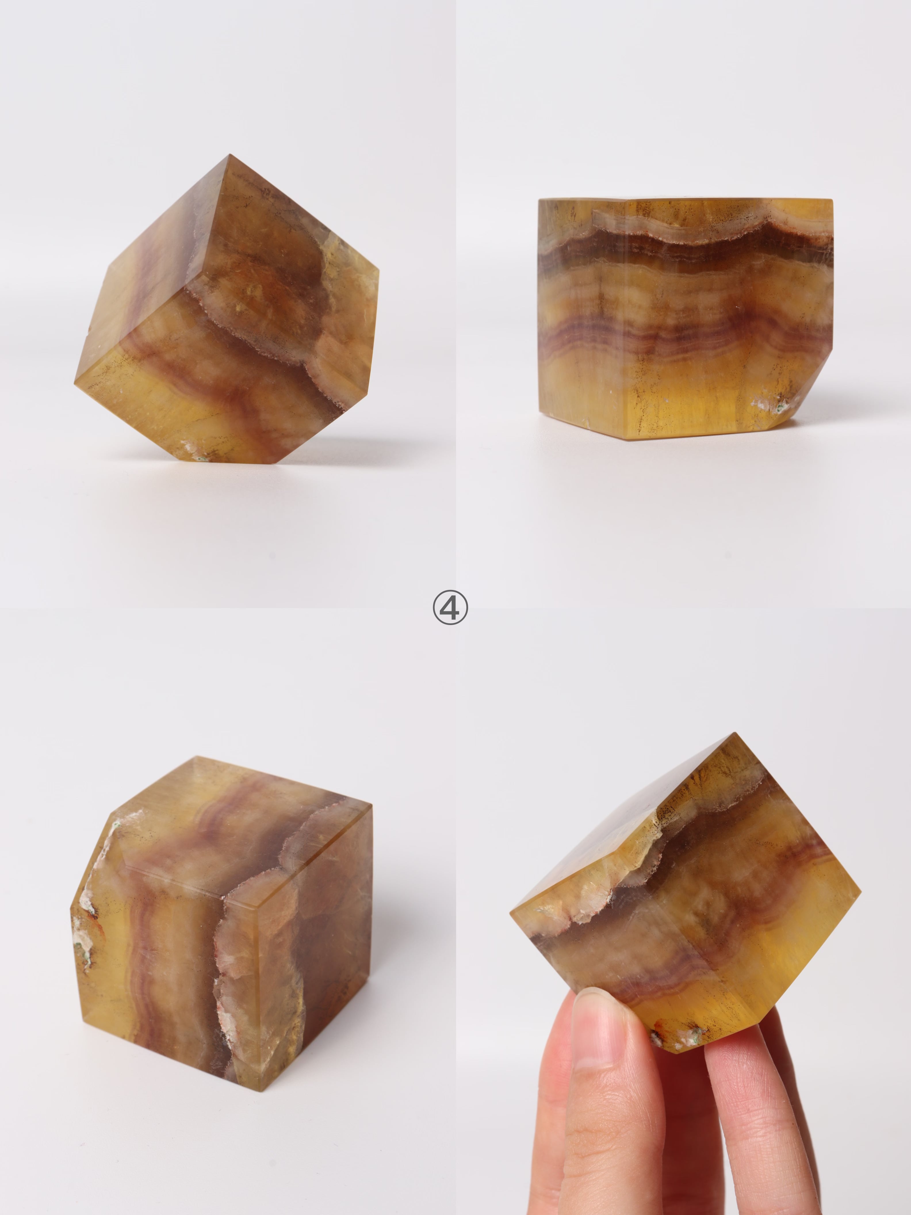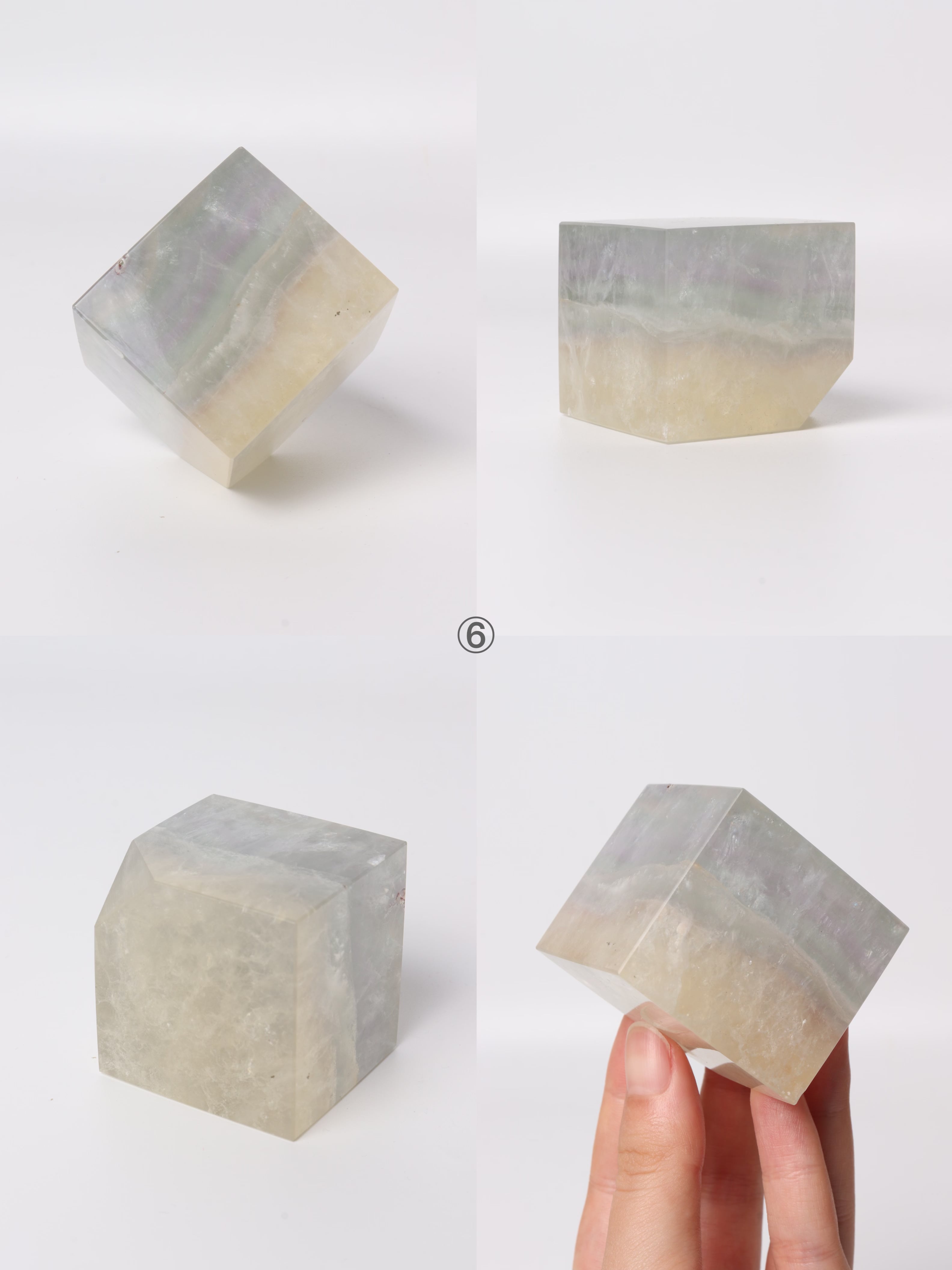 カラーバリエーションが豊富で、キューブの形に整えられたフローライトの飾り物。