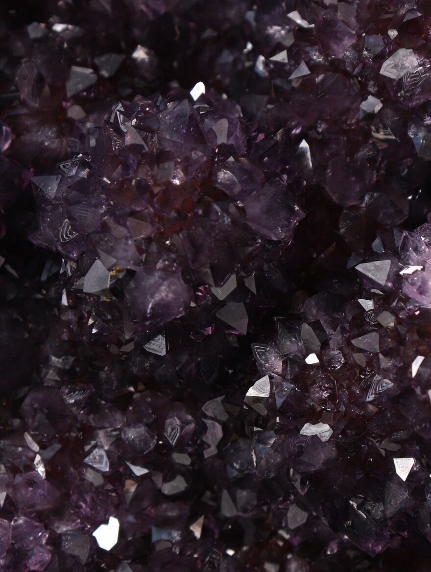 濃い紫の結晶がキラキラと輝くウルグアイ産のアメシスト。インテリアで飾るためドーム状に加工したものです。