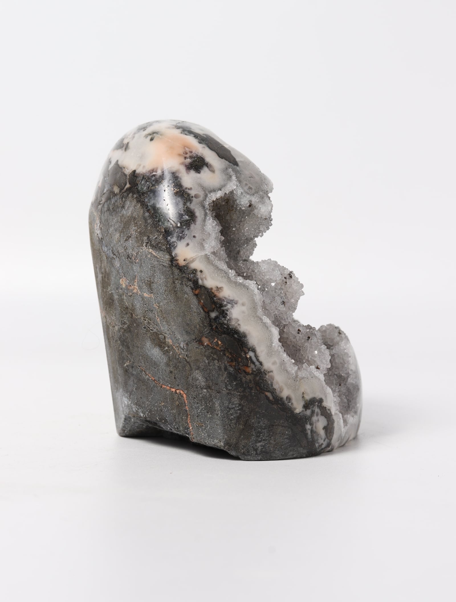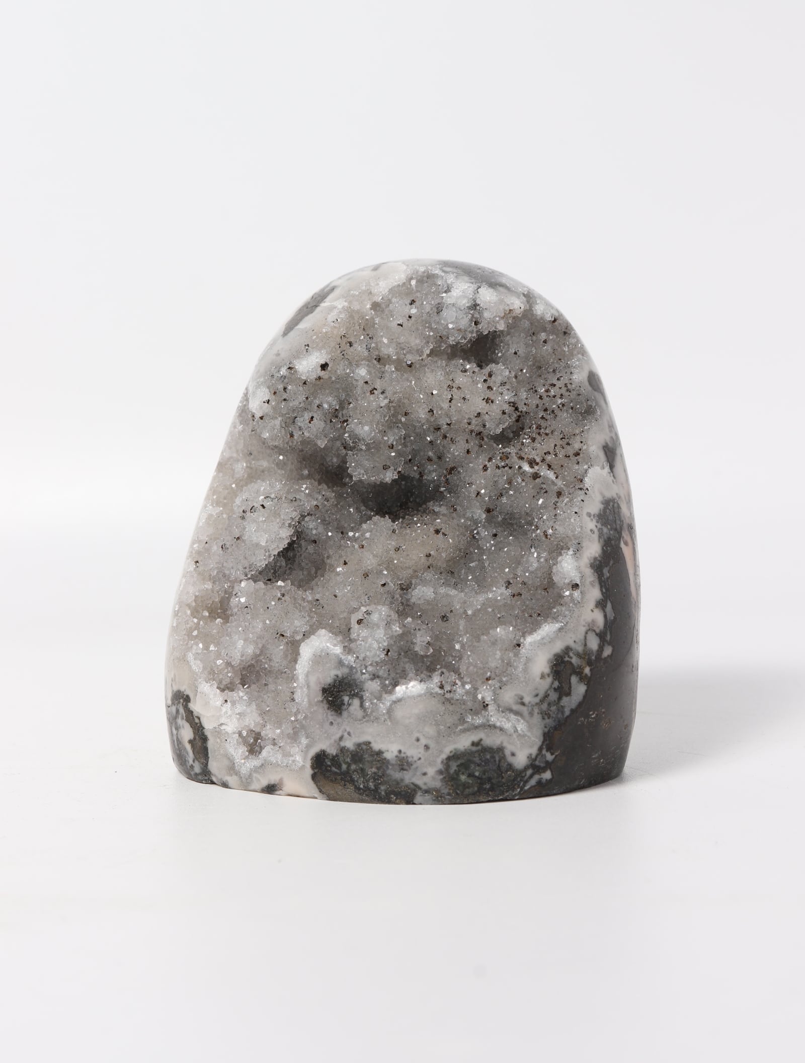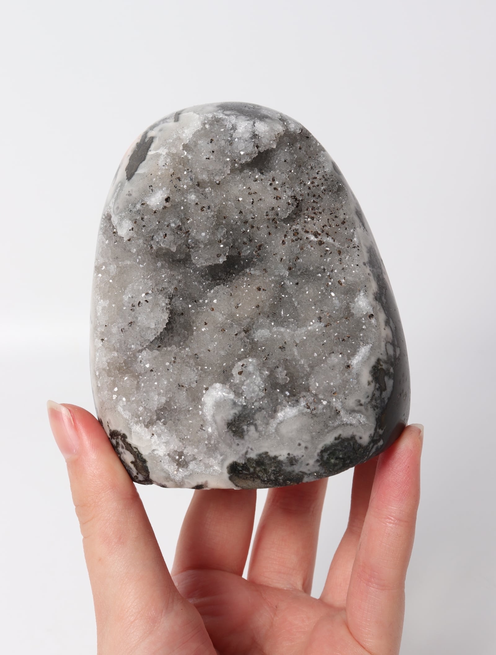 珪酸を含んだ溶液が岩石の隙間などに沈殿し、形成された微小な石英の集合体をドゥルージーと言います。そんなモコモコとしたドゥルージーがまるで砂糖のようなにキラキラと輝きます。