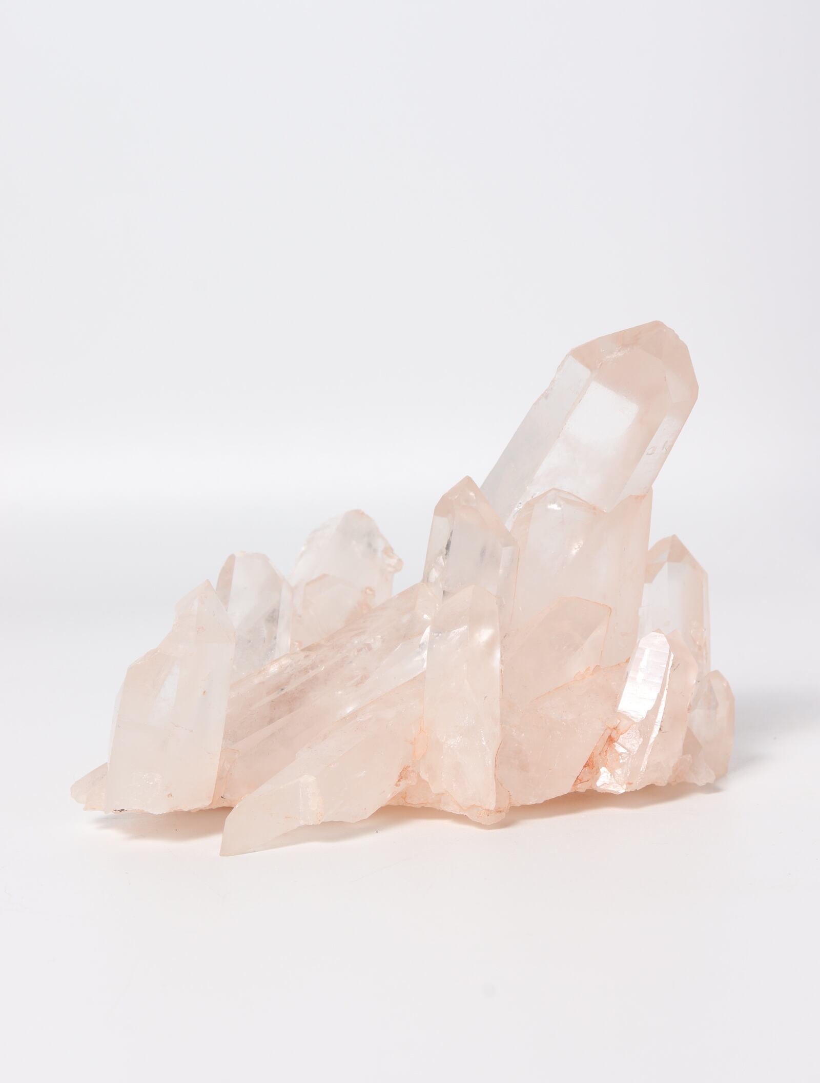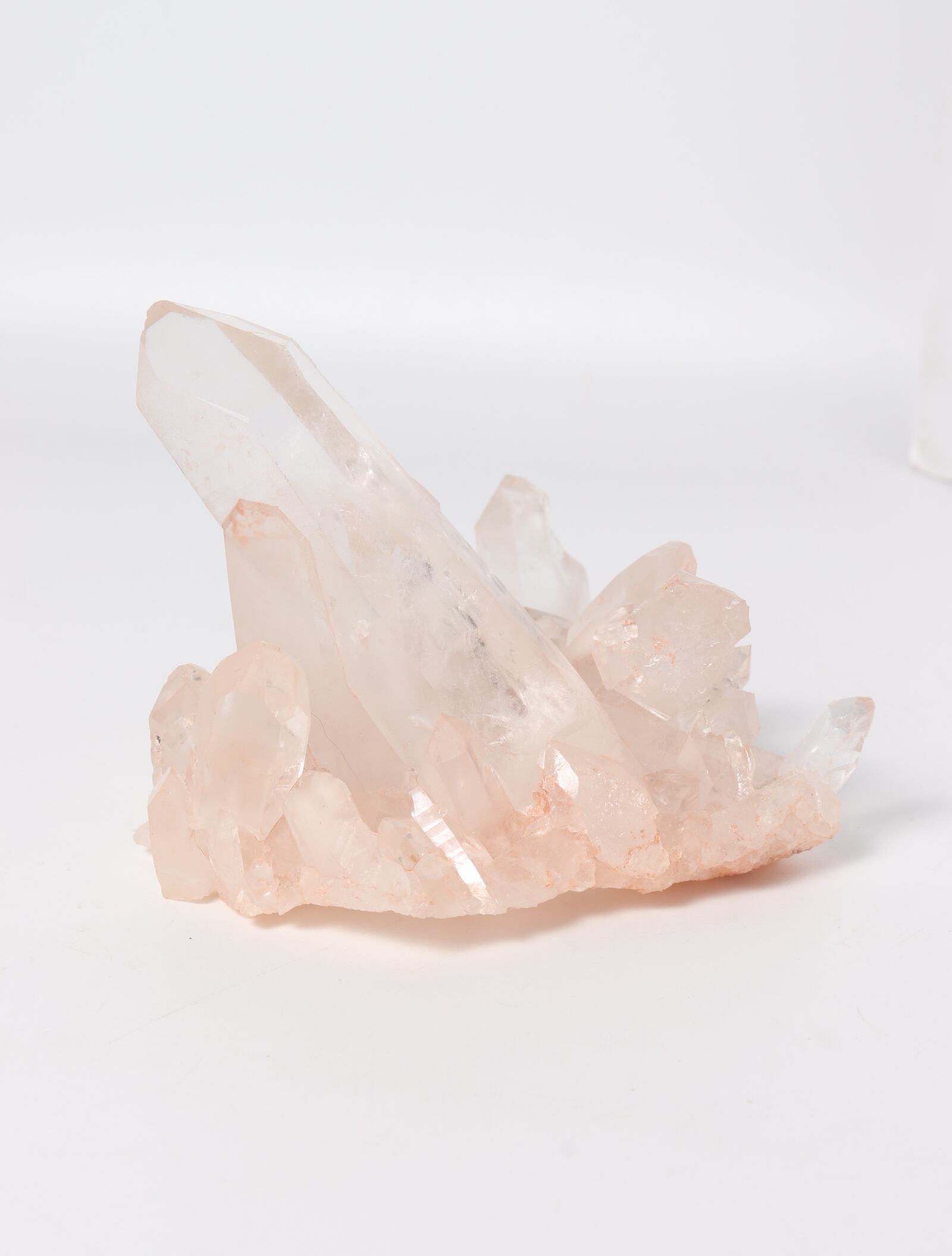 アフリカ大陸の南東に浮かぶマダガスカル島で採れた、可愛らしいほんのりピンク色を持つ天然な水晶クラスターです。微量な鉄分が表面に付着しているため、ピンク色に発色します。